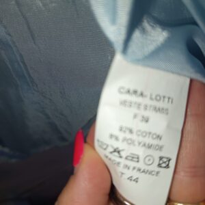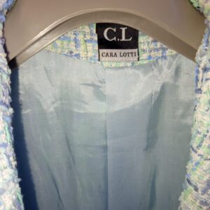 Blazer Cara Lotti, celeste e menta. Ottime condizioni generali. Colori dominanti celeste e menta e impreziosito con catene celesti sulle tasche. tg 44